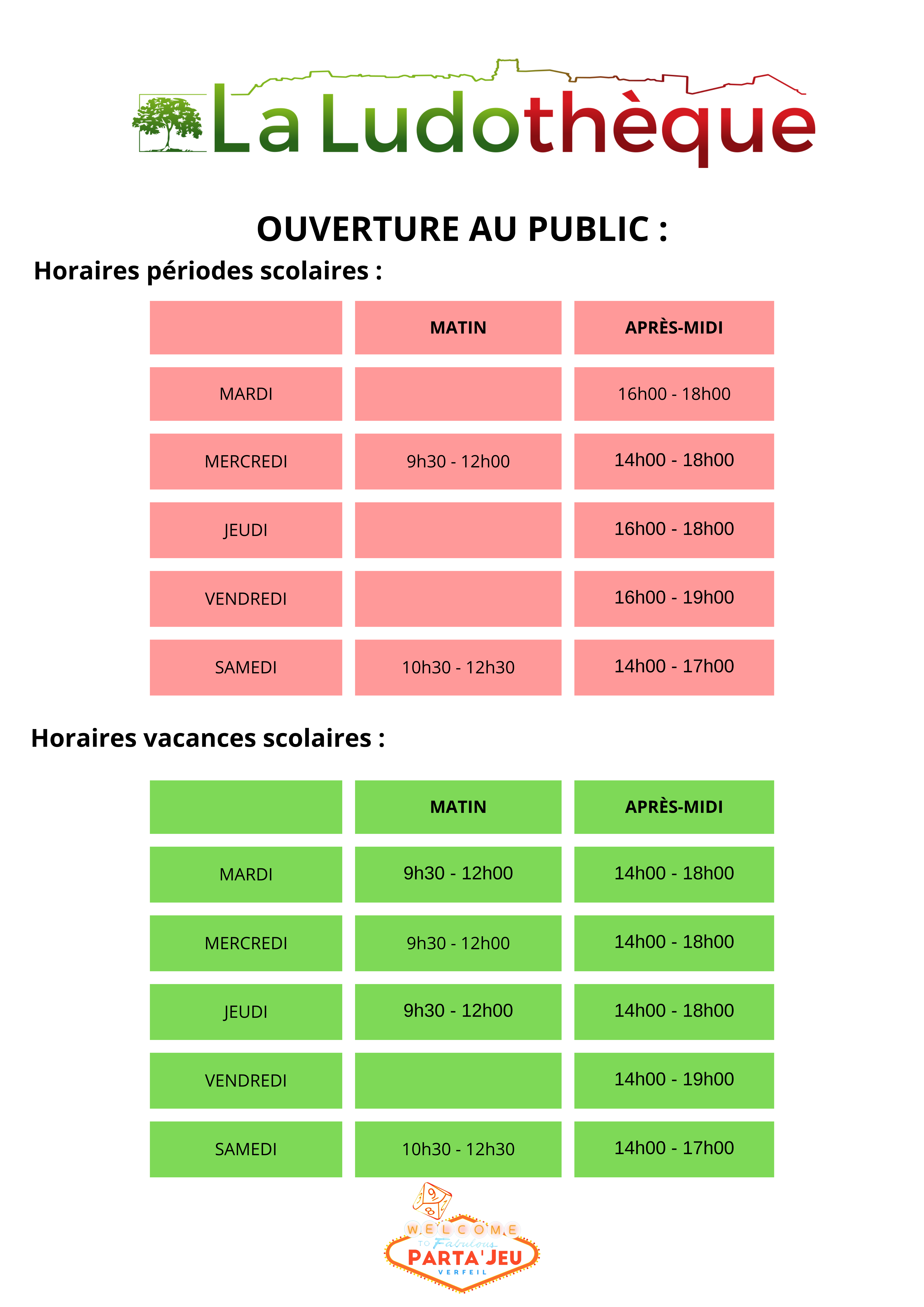 La ludothèque sera fermée du 2 au 6 décembre 2025 et du 25 décembre 2025 au 1er janvier 2026.